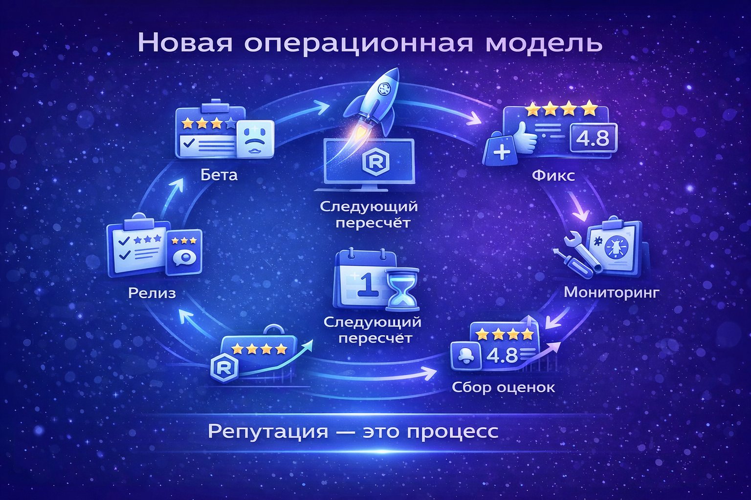 Теперь используется взвешенное среднее: чем свежее оценка, тем больше она влияет на итог. Важная деталь для планирования: веса пересчитываются строго один раз в месяц. Это значит, что рейтинг не меняется в реальном времени, если вы выпустили исправление и начали собирать позитивные отзывы, результат в витрине появится не раньше следующего пересчёта. Для команд, которые работают над восстановлением репутации после неудачного релиза, это конкретный ориентир: планировать нужно в горизонте месяца, а не недели.