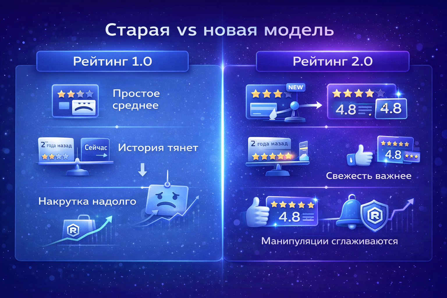 Среди заявленных целей обновления – снизить влияние старых неудач и уменьшить эффект от ранних накруток. RuStore признаёт, что прежняя система позволяла манипулировать рейтингом, и старается это исправить.
